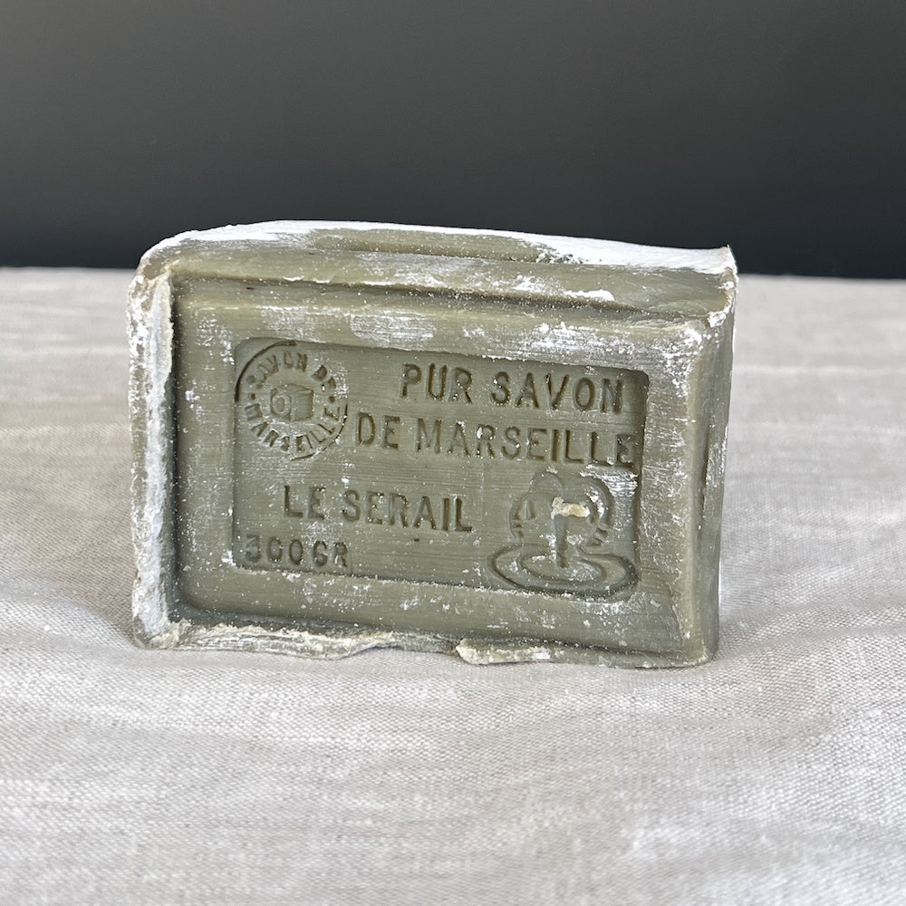 The white film that you can see on the external surface of Le Serail soap, (called "le masque", the mask), is a sign of purity and authenticity.