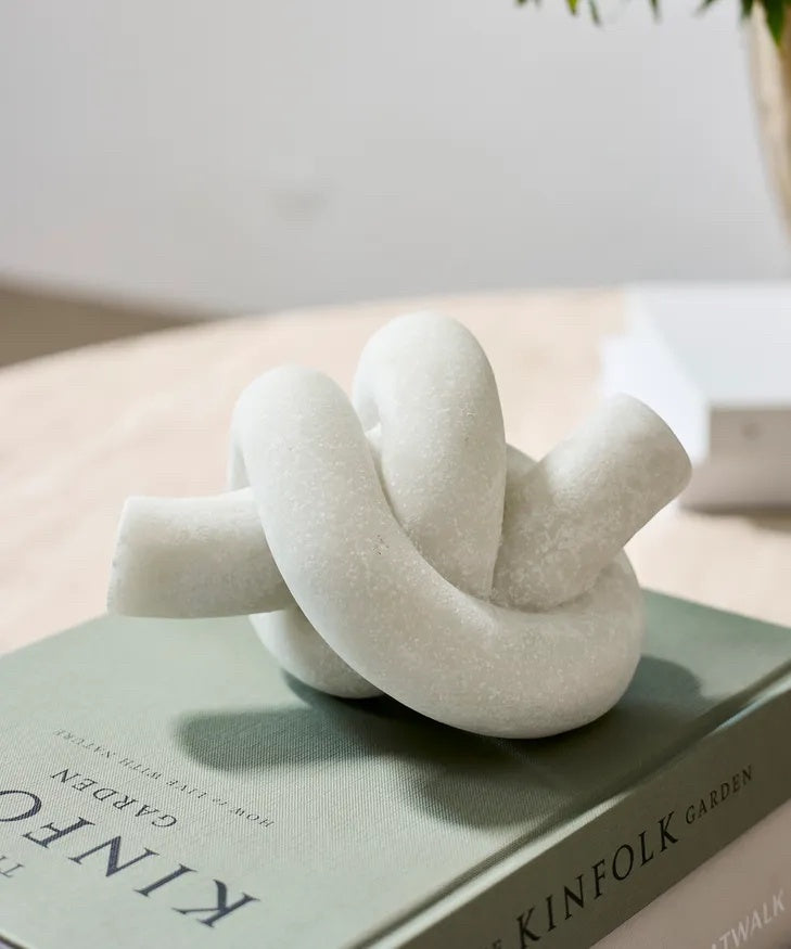 Stylised decorative knot décor cast from a quartz sand resin, that gives a marble-like appearance.
