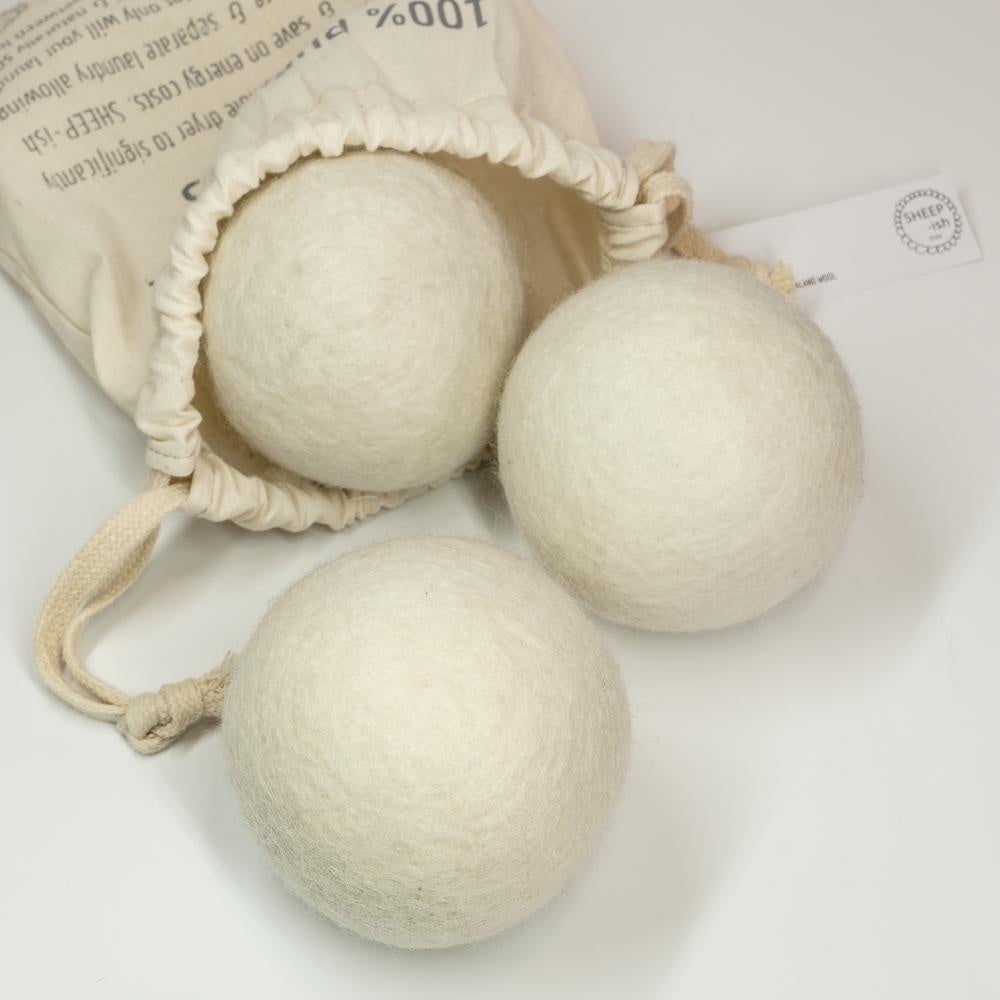 Add three dryer balls to your tumble dryer to significantly reduce drying time & save on energy costs. SHEEP-ish dryer balls absorb moisture & separate laundry allowing hot air to circulate more freely. Not only will your laundry dry faster, wool dryer balls reduce static & naturally soften fabric.