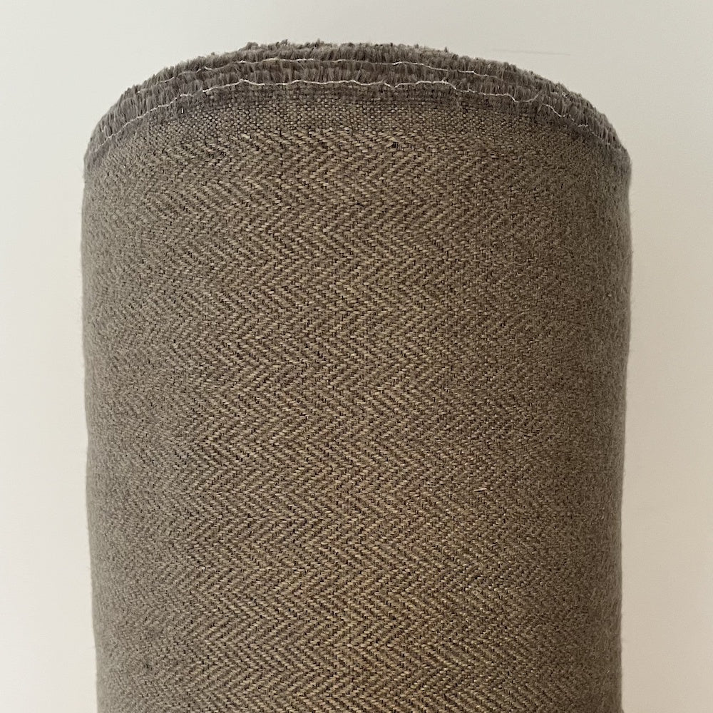 A tweed green herringbone, suitable for upholstery, curtains and cushions.