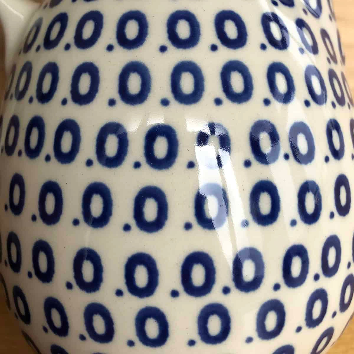 The durable and functional creamy white and blue stoneware pieces are unique and easily identifiable. Ceramics and pottery are a definitive part of the identity of the city of Boleslawiec, Poland.
