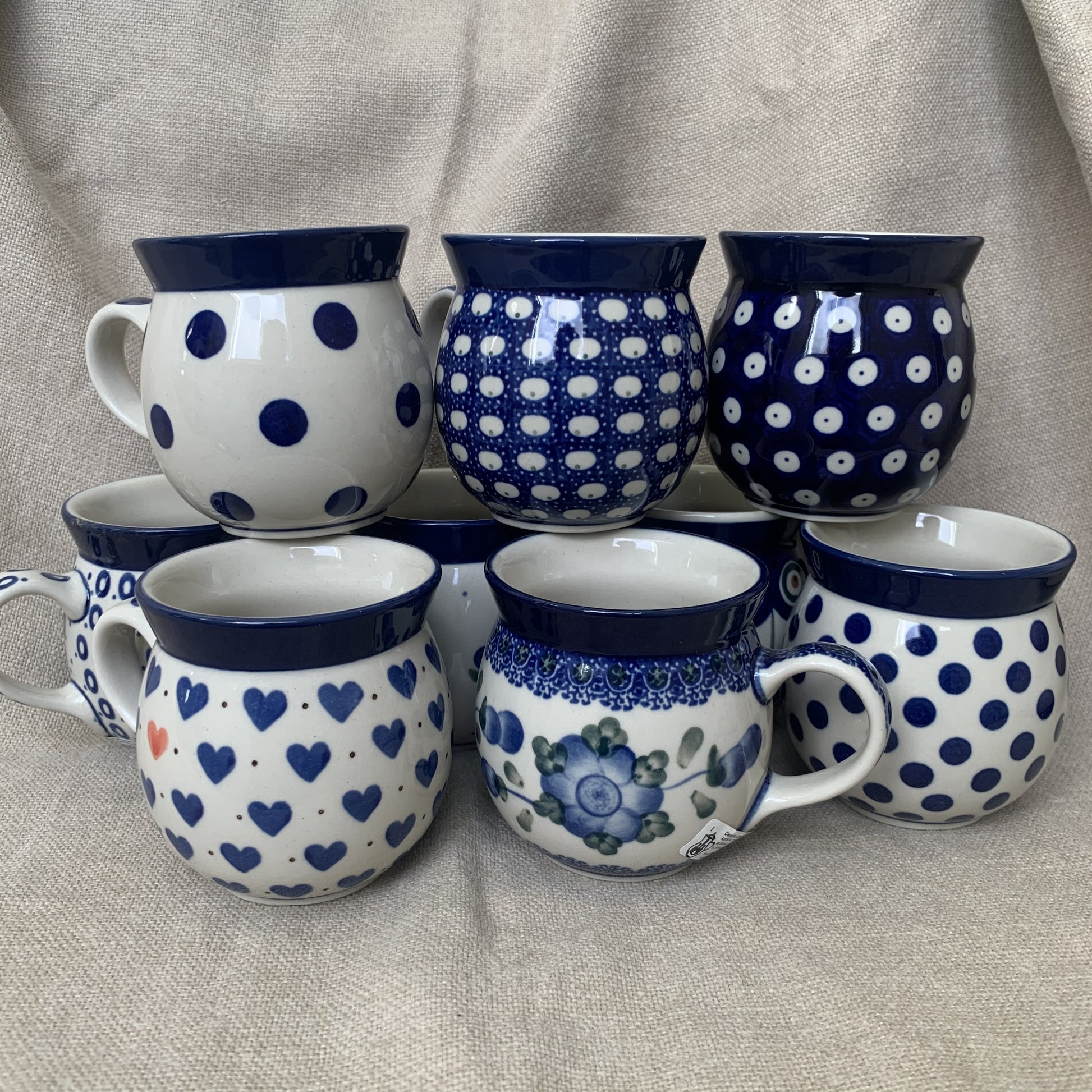 The durable and functional creamy white and blue stoneware pieces are unique and easily identifiable. Ceramics and pottery are a definitive part of the identity of the city of Boleslawiec, Poland.