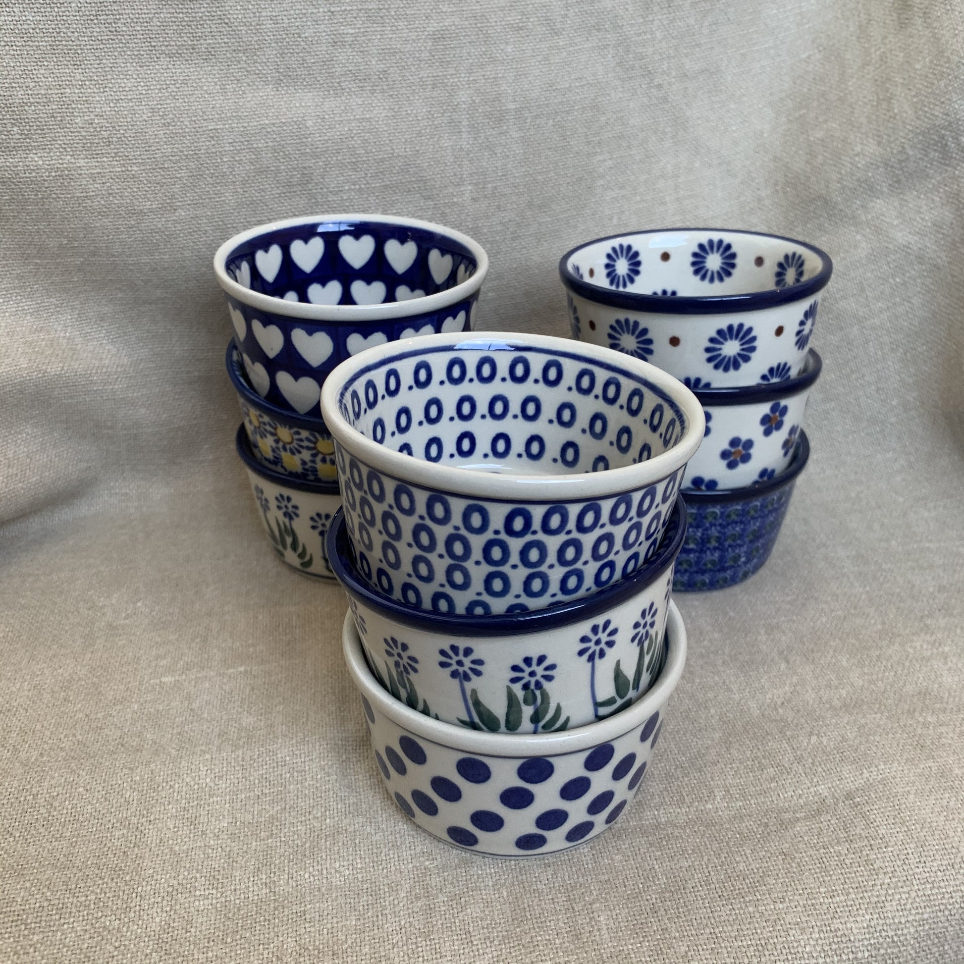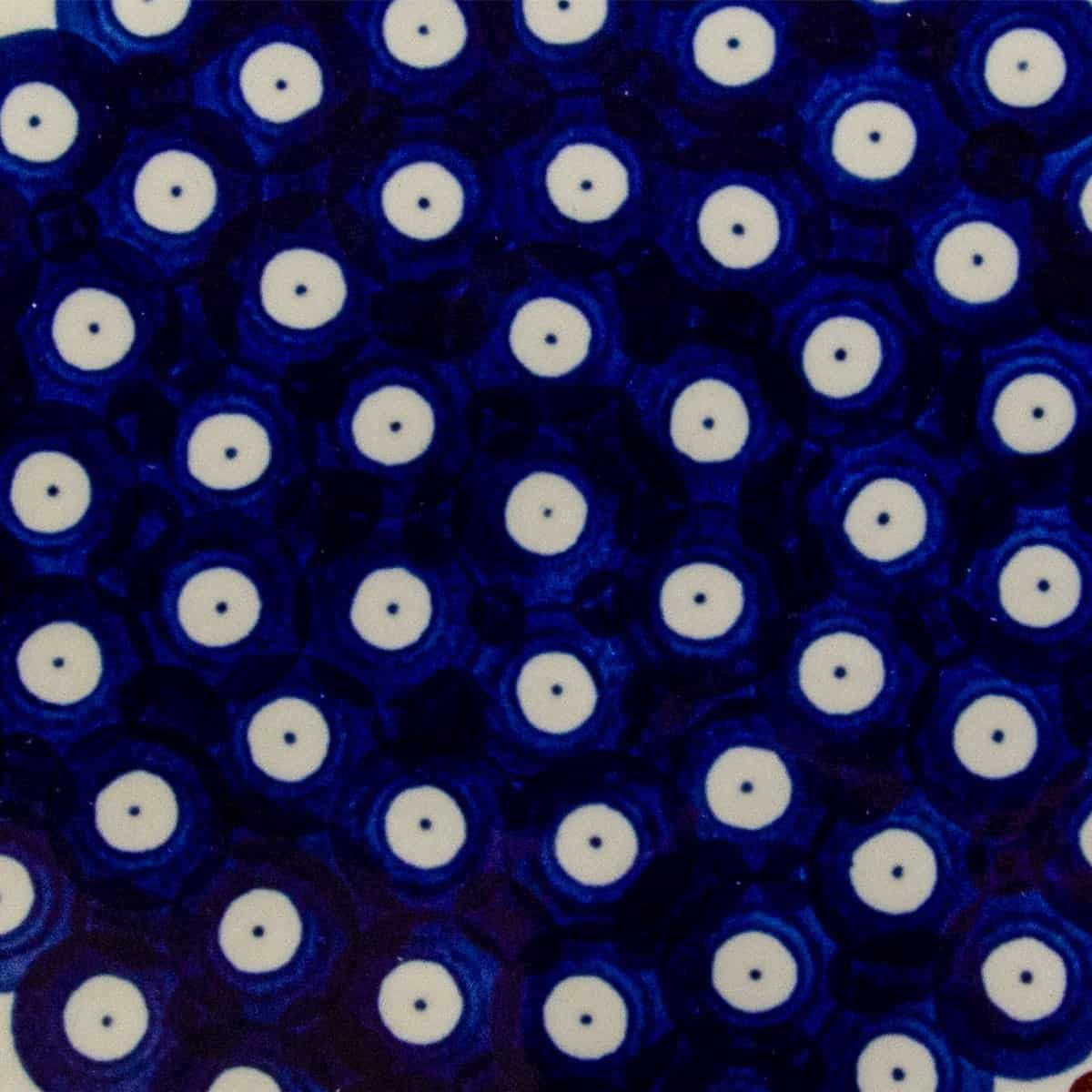 The durable and functional creamy white and blue stoneware pieces are unique and easily identifiable. Ceramics and pottery are a definitive part of the identity of the city of Boleslawiec, Poland.