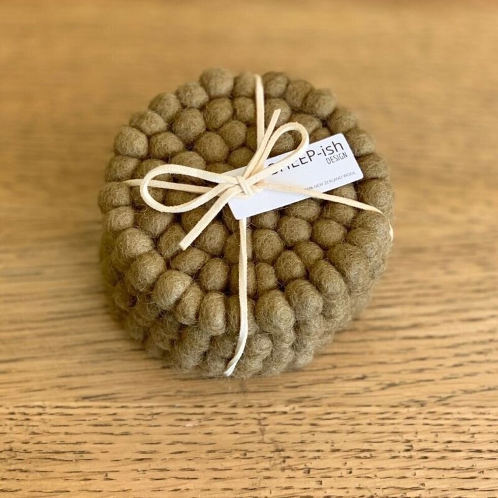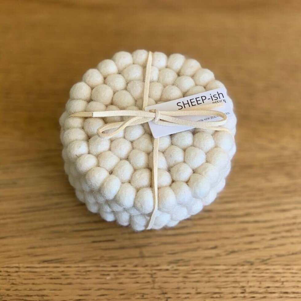 Gorgeous felt ball coasters handmade in Nepal using 100% NZ wool and non-toxic dyes.