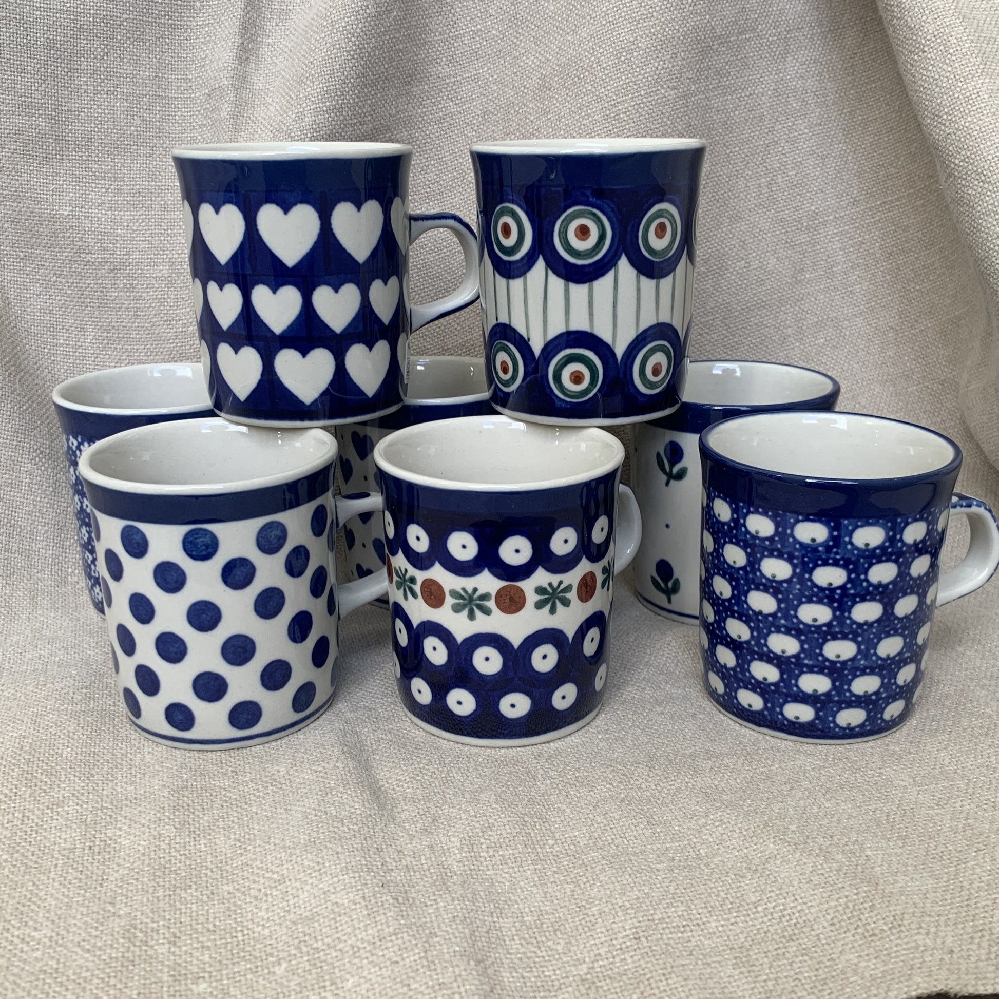The durable and functional creamy white and blue stoneware pieces are unique and easily identifiable. Ceramics and pottery are a definitive part of the identity of the city of Boleslawiec, Poland.