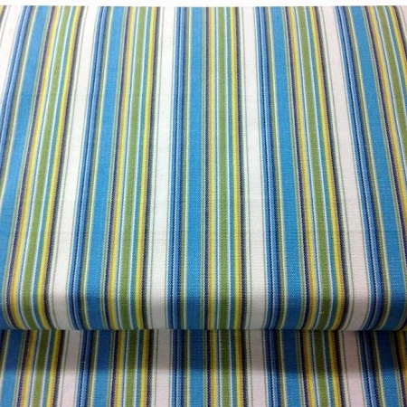 Turquoise, green and white striped deckchair canvas specifically designed for re-covering deck chairs and directors chairs, this fabric would look equally good in the garden or on the beach.