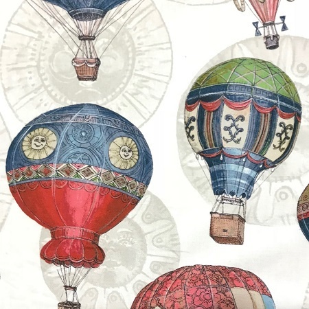 A delightful STOF printed fabric depicting colourful balloons on a white background.