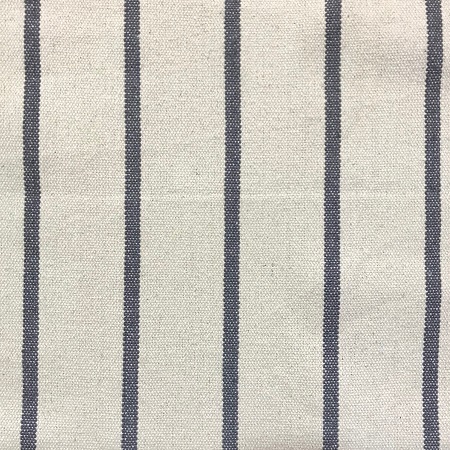 A rustic, heavy weight cotton with a charcoal stripe on an off white background. Suitable for upholstery.